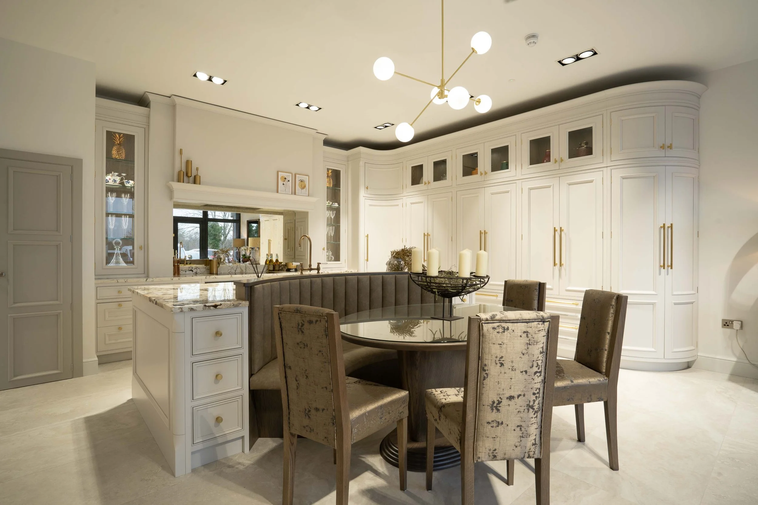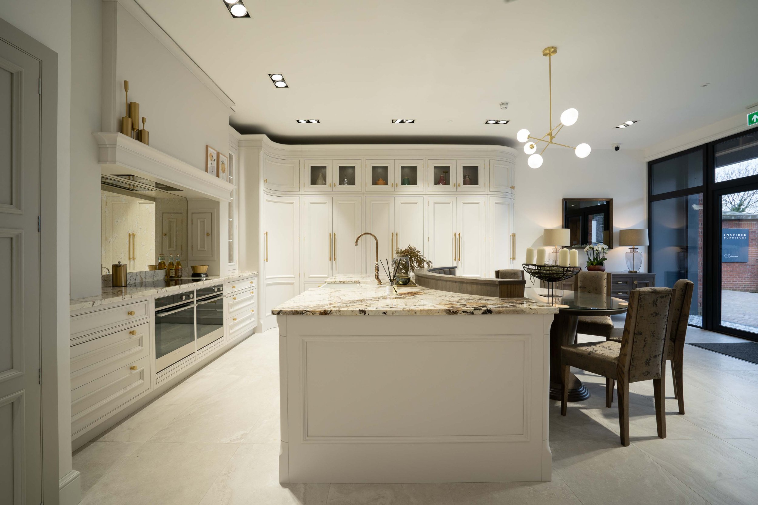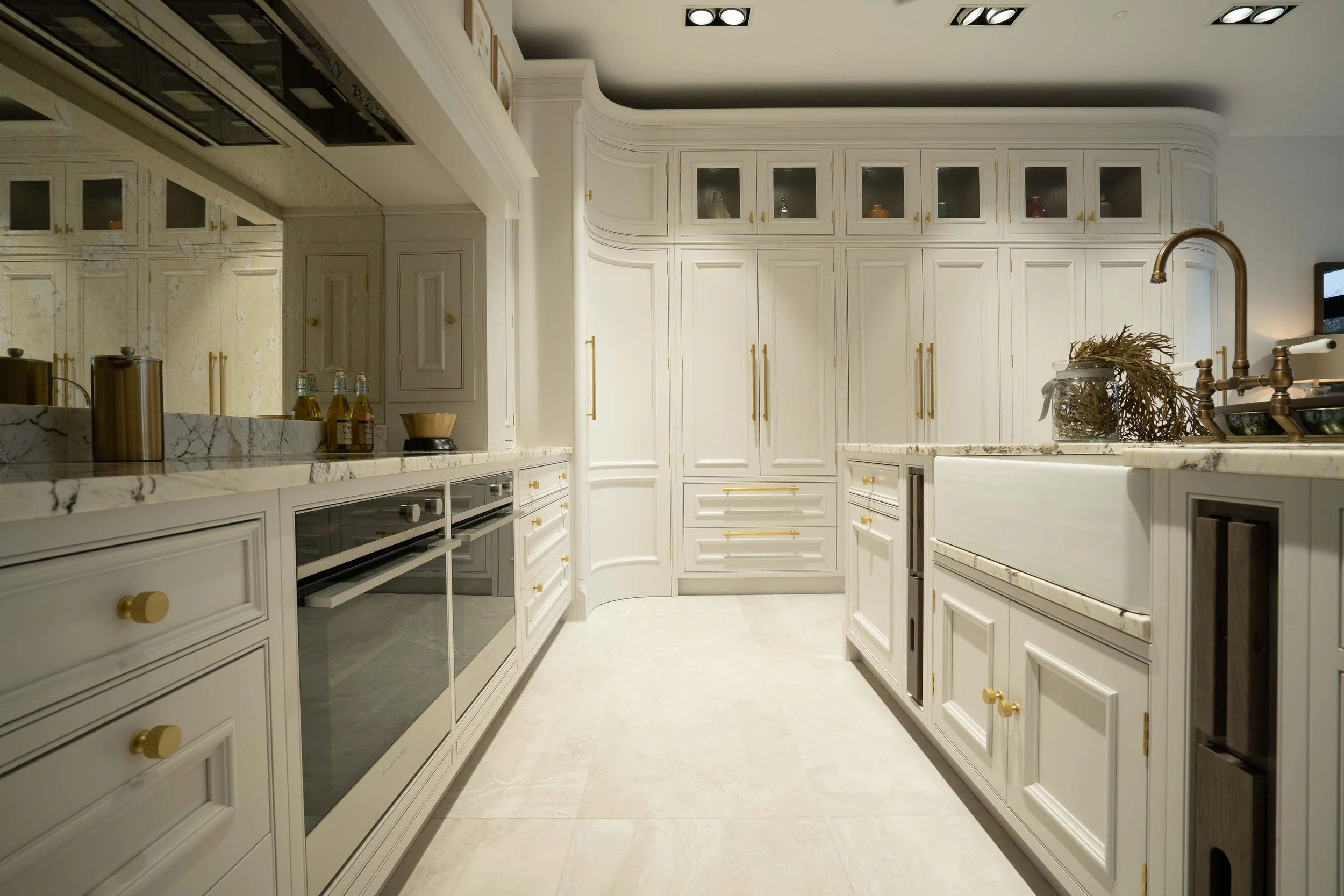 A traditional classic kitchen styled with modern characteristics. The Mayfair Kitchen has a heavy beaded panel style door which gives it that high-end luxury feel, at Fine Living Interiors we combine luxury with function.