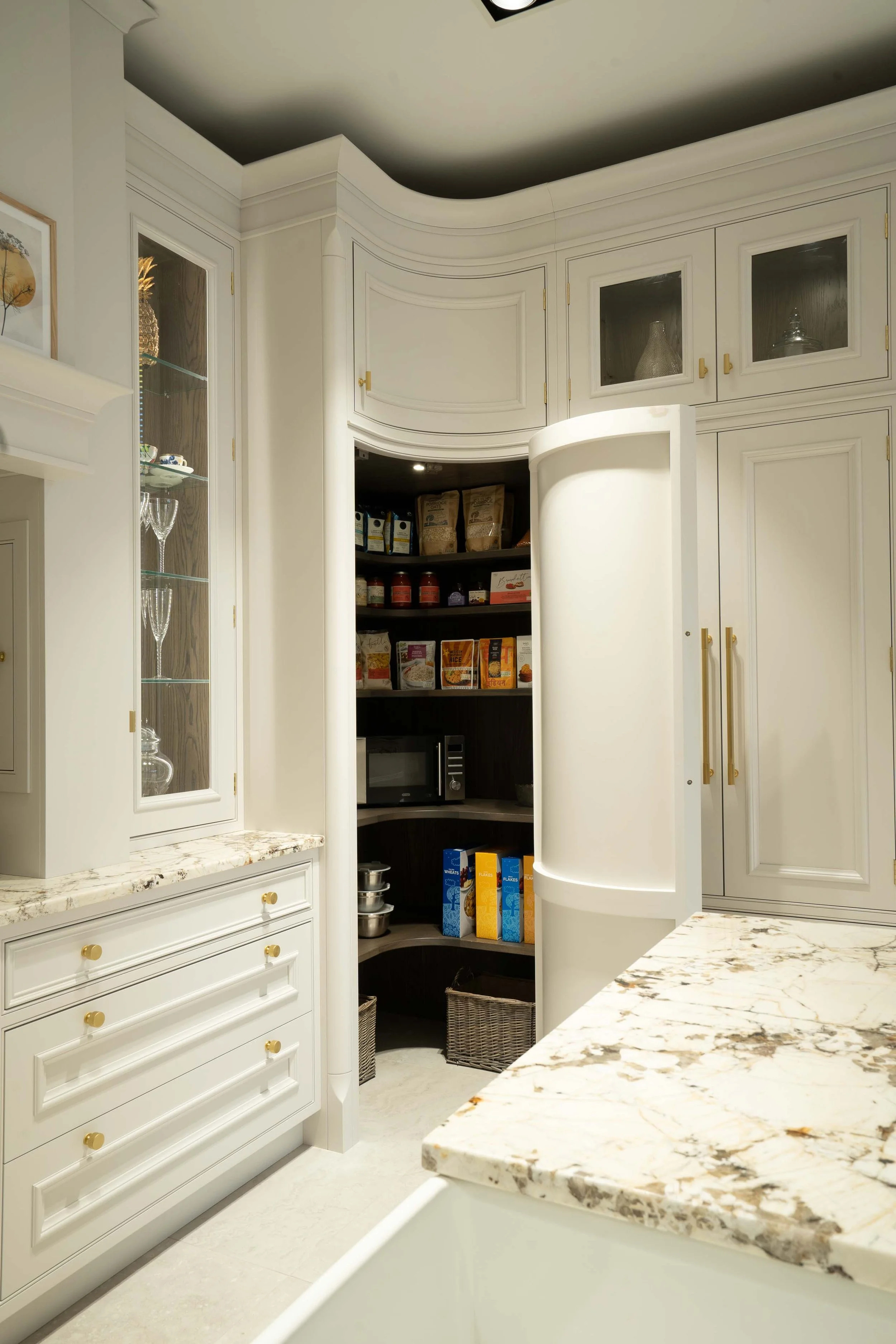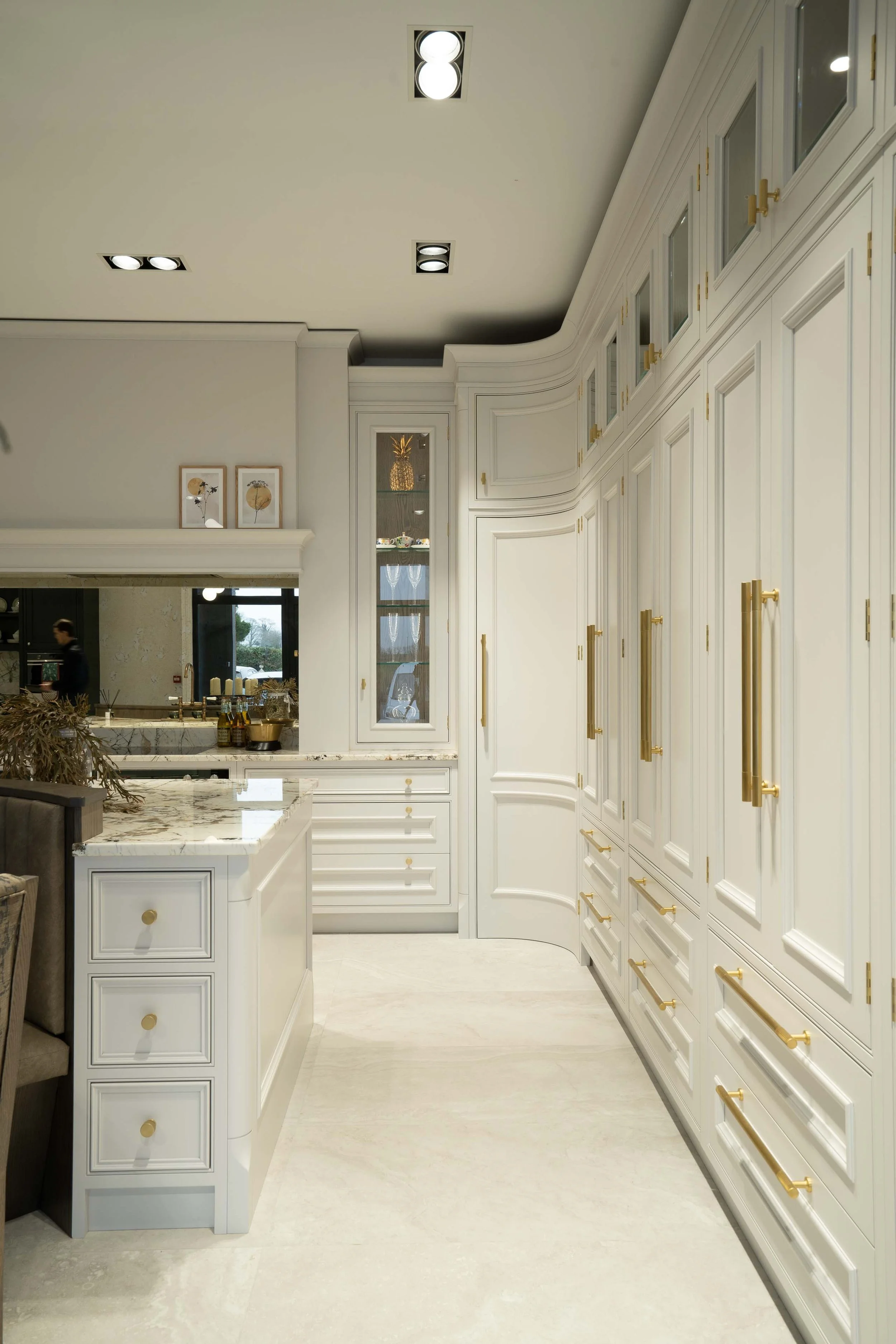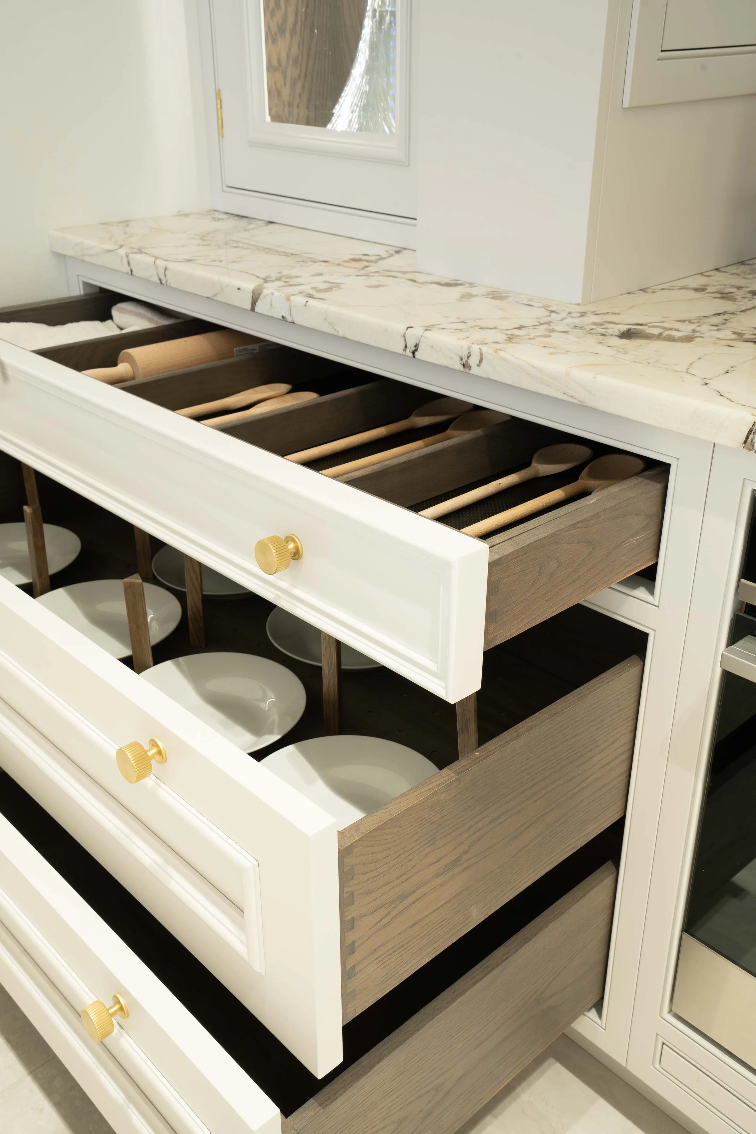 A traditional classic kitchen styled with modern characteristics. The Mayfair Kitchen has a heavy beaded panel style door which gives it that high-end luxury feel, at Fine Living Interiors we combine luxury with function.