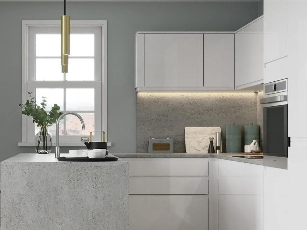 This handleless design features sleek, modern lines and a minimalist aesthetic. The absence of visible handles creates a clean, uncluttered look, while allowing for smooth and effortless access to storage.